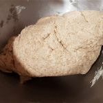 - Deshacemos la levadura fresca en 50ml de agua, desmenuzándola con los dedos y mezclando bien, removiendo con una cuchara. La agregamos al bol con la masa, y amasamos durante unos 15min más.